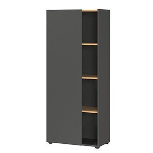 Der Aktenschrank mit offenen Fächern 'Sizilia' - 4 OH bietet einen interessanten Mix aus offenen und geschlossenen Stauräumen. Er hat ein Maß von 145 x 61 x 34 cm (H x B x T). Auf den 5 Stellfüßen aus Kunststoff steht der Schrank sehr stabil. Er ist aus einem unempfindlichen melaminharzbeschichteten Holz geschaffen. Der Aktenschrank hat 4 Fächer, die durch die Einlegeböden geschaffen werden. Zweidrittel jedes Fachs wird durch die Flügeltür verdeckt. Die Tür kann links oder rechts montiert werden. Sie entscheiden, auf welcher Seite die offenen Fächer sein sollen. Die Tür ist mit einem Türdämpfer versehen, sodass sie leise schließt.