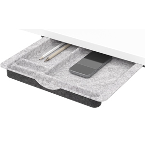 Material: Filz, grau-meliert Schub: 2 Kunststoffführungen Montage: Unterbau, unter der Tischplatte |