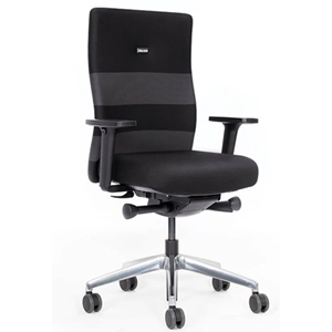 Gestell: 5-Stern-Fußkreuz aus poliertem Aluminium, Durchmesser 63 cm Rollen: Doppellenk-Rollen, Durchmesser 65 mm, universal einsetzbar, unbelastet gebremst Mechanik: AutoActive Syncromatik: Synchronmechanik mit Sitzautomatik, automatische Gewichts- und Federkrafteinstellung (feinjustierbar), Rückenlehne u. a. in Nullposition arretierbar, frei bewegliche Sitzneige nach vorn (0° bis 3 °, stufenlos und gedämpft), stufenlose Sitztiefenverstellung, stufenlose Sitzhöhenverstellung im Bereich 40 - 53 cm über schwarze Gasfeder, komfortable Tiefenfederung, Verhältnis Sitz und Rücken 1:3 Sitz: Schiebesitz, mit Schaumstoff gepolstert, mit Bezug bespannt Rückenlehne: anatomisch geformte hohe Rückenlehne, vollgepolstert mit Bezug bespannt, mit integrierter Lordosenstütze und flexiblem Schulterbereich, stufenlos höhenverstellbar |