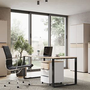 Die Büromöbel der Serie 'Asturia' zeichnen sich durch ein helles und offenes Design aus. Die Farbgestaltung mit dezenten Akzenten in Lindberg-Eiche sorgt dafür, dass ein wohnliches Wohlfühlambiente entsteht. Alle Elemente sind perfekt aufeinander abgestimmt, sodass sie sich individuell miteinander kombinieren lassen. Mit 'Asturia' lässt sich ein Home-Office nach Maß gestalten, welches ansprechend und stilvoll ist.