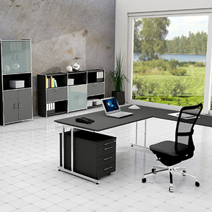 Das Komplettbüro 'B-Artline' wirkt durch die Verbindung von Holz und Stahl klassisch, zeitlos und kultig. Die Kombination aus einem Eckschreibtisch mit den passenden Stauräumen bietet einen idealen Arbeitsplatz. Im hellen oder dunklen Dekor sieht die neue Büroeinrichtung repräsentativ und stilvoll aus - ganz gleich ob in einem großen Unternehmen oder in einem kleinen Home-Office.