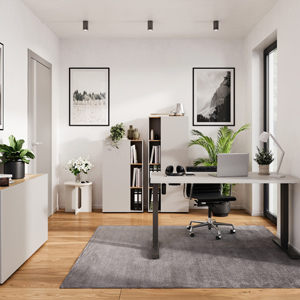 Der höhenverstellbare Steh-Sitz-Tisch passt mit seinem Maß von 140 x 80 cm (B x T) gut ins Home-Office. Die Arbeitshöhe ist elektrisch im Bereich von 72 bis 120 cm verstellbar, sodass im Sitzen und auch im Stehen gearbeitet werden kann. Die Höhe wird über einen Motor eingestellt, der die Tischplatte mit einer Hubgeschwindigkeit von 22 mm pro Sekunde bewegt. Gesteuert wird er über einen Schalter. Dieser bietet 2 Speicherplätze für oft genutzte Höhen.