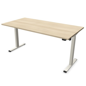 Gestell: Hubsäulengestell mit T-Füßen, das Bein besteht aus einer zweiteiligen Säule aus Stahlprofilen, Maße: 80 × 50 mm, 75 × 45 mm (Reihgenfolge von unten nach oben), Teleskopierbare Traverse, Fußlänge 590 mm, inklusive Nivelliergleiter (Verstell-Bereich von + 10 mm), pulverbeschichtet Tischplatte: melamin beschichtete Spanplatte (MFC), Stärke 25 mm, 2 mm Kante in Klebetechnologie Technische Parameter: 1 Motor, Auffahrschutz-Funktion (einstellbare Empfindlichkeit), Überhitzungsschutz, Stufenlose Start & Stopp, Stufenlose Up & Down Höhenverstellung, Geschwindigkeit 21 mm / s bei maximal zulässiger Belastung, Geräusch < 48 dB, Stromverbrauch im Standby-Modus 0,5 W, Belastbarkeit 60 kg unter Berücksichtigung der Tischplatte, Antriebssystem: Wechselstrom Schalter: Up / Down Druckknopf mit Display |